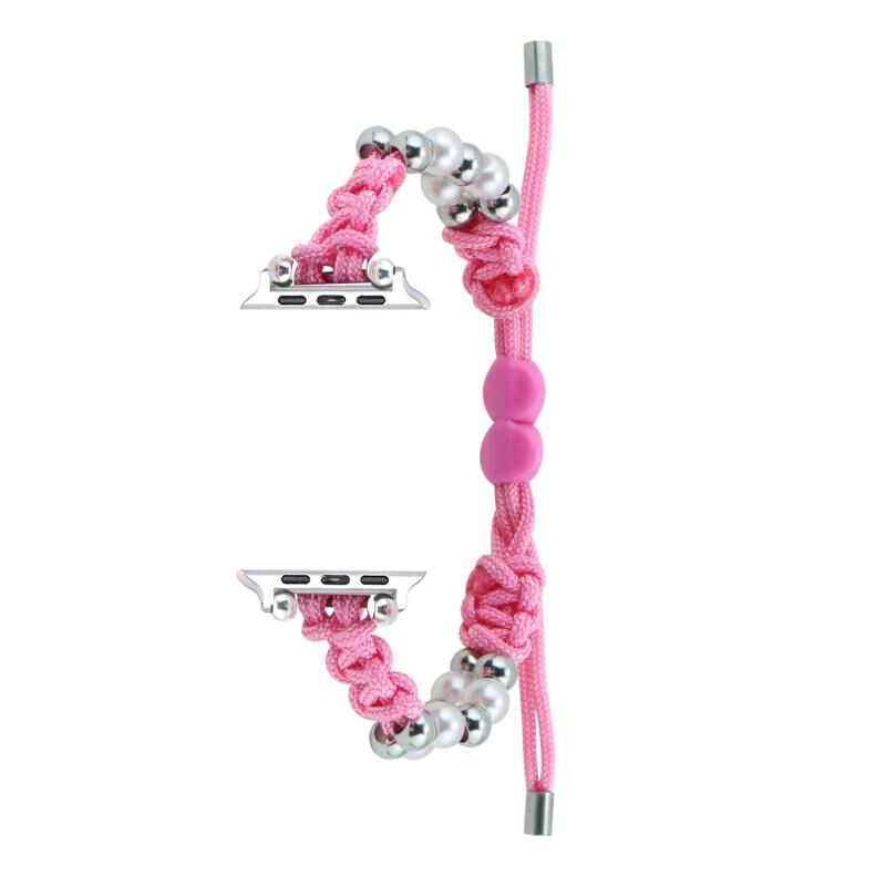 Για Apple Watch Series 8 41mm Λουρί Παρακορδίου με Χάντρες και Σχοινί, Πλεχτό (ρόζ)
