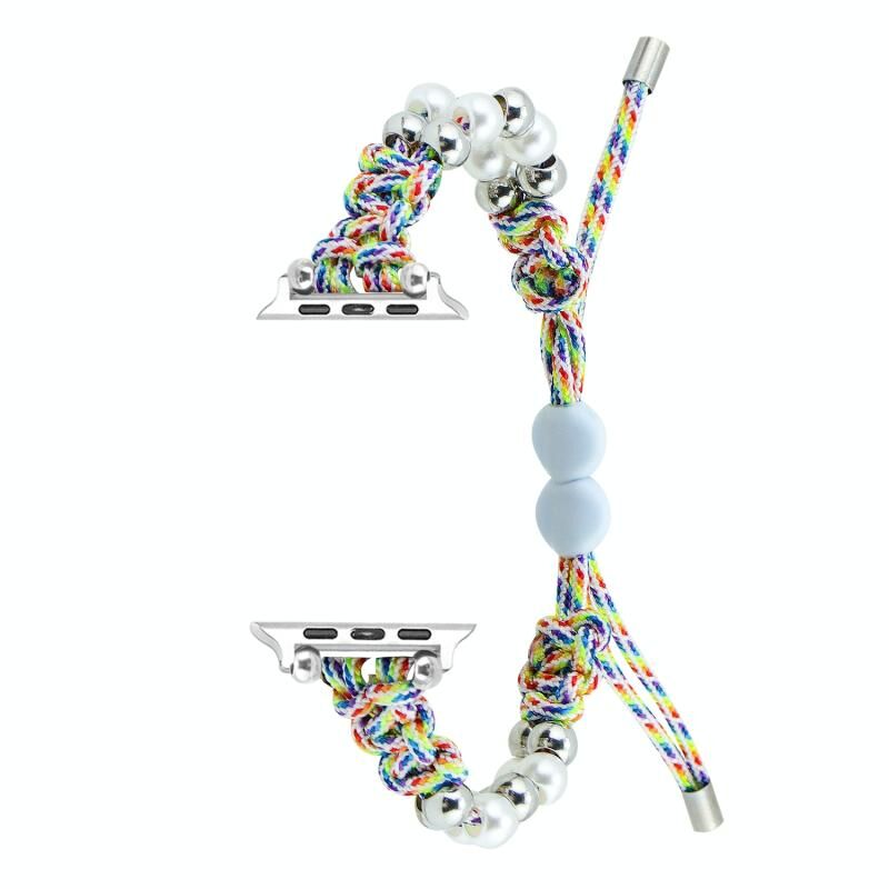 Για Apple Watch Series 8 41mm Χάντρες Paracord με Σχοινί Πλεχτού Βραχιολιού Ρολογιού (Ουράνιο Τόξο)