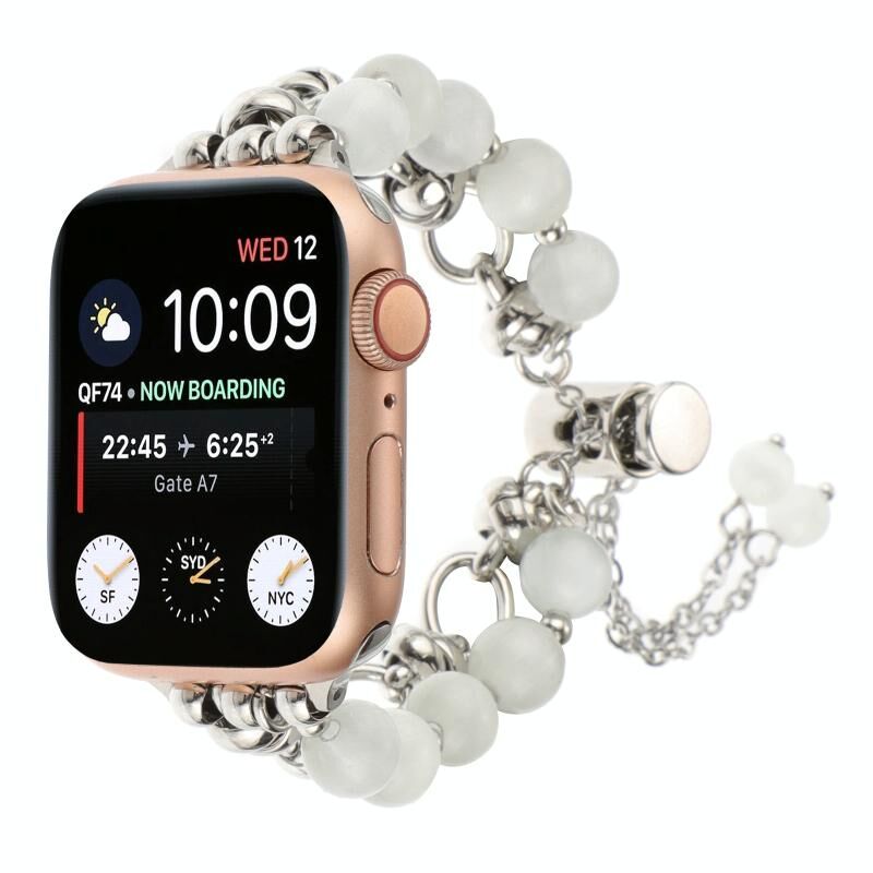 Για Apple Watch Series 8 41mm Μεταλλικό Μπρασελέ Λουρί με Αλυσίδα Μαργαριταριών (Λευκό Ασημί)