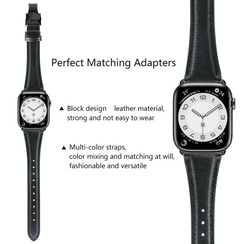 Για Apple Watch Series 8 41mm Λουρί ρολογιού από απλό δέρμα με αγκράφα πεταλούδας (Μαύρο + Μαύρο)