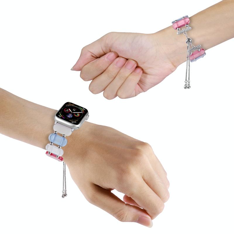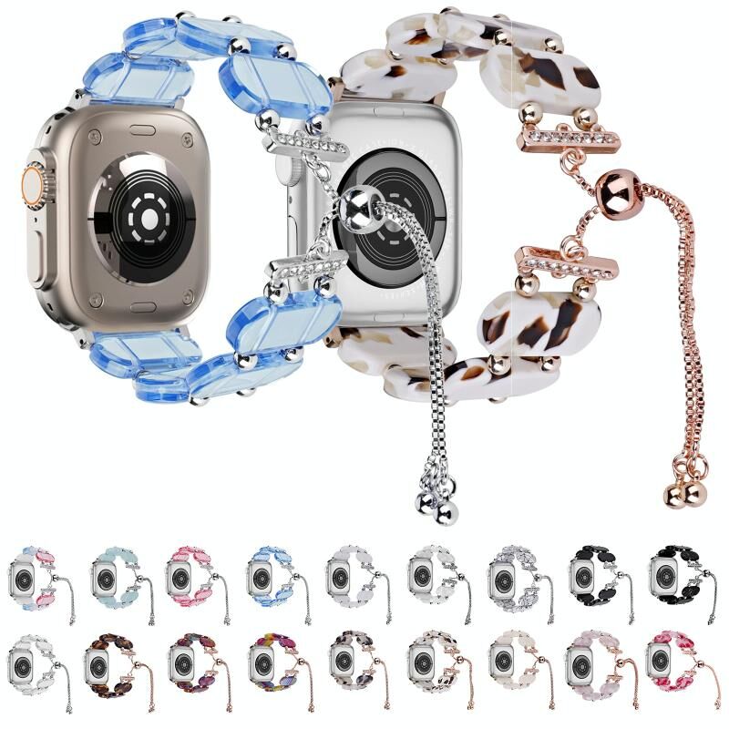 For Apple Watch Series 8 41mm Resin Retractable Chain Watch Band(Brown White)