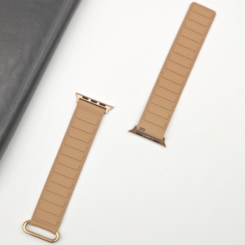 For Apple Watch Series 8 41mm Reverse Buckle Magnetic Silicone Watch Band(Rose Buckle Milk Apricot)