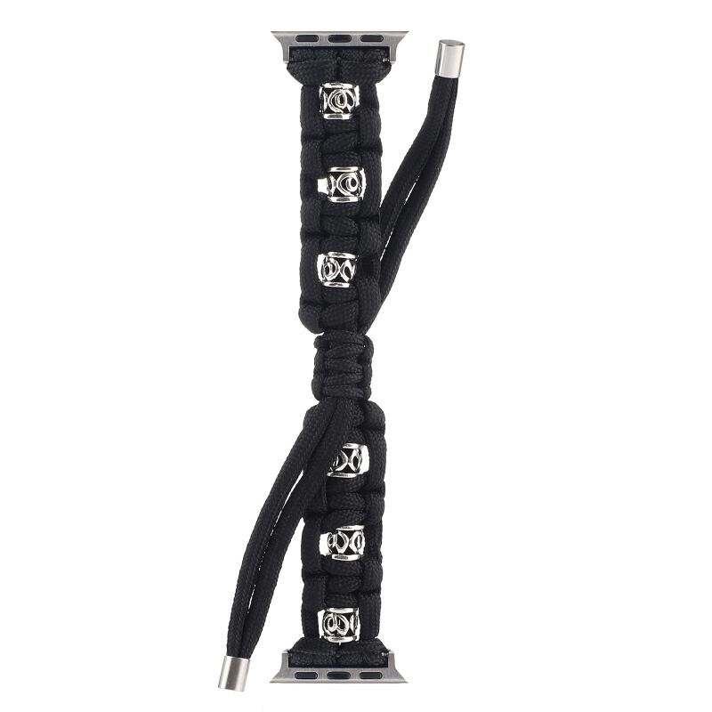 Για Apple Watch Series 8 41mm Λουρί Σιλκένιο Ασημί με Χάντρες Πλεχτό (Μαύρο)