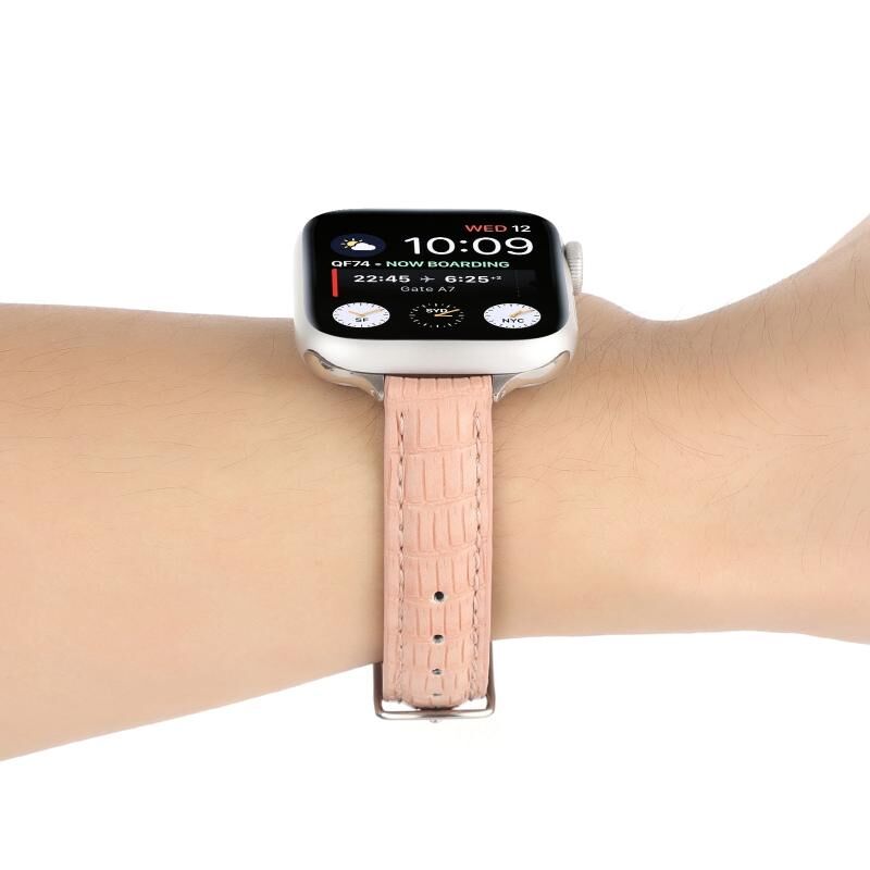 Για Apple Watch Series 8 41mm Λεπτό Δερμάτινο Λουρί Κροκόδειλου (ρόζ)