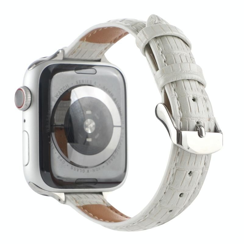 Για Apple Watch Series 8 41mm Λεπτό Δερμάτινο Λουρί Κροκόδειλου (Λευκό)