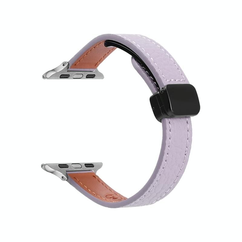 For Apple Watch Series 8 41mm Slim Magnetic Buckle Genuine Leather Watch Band(Litchi Lavender)