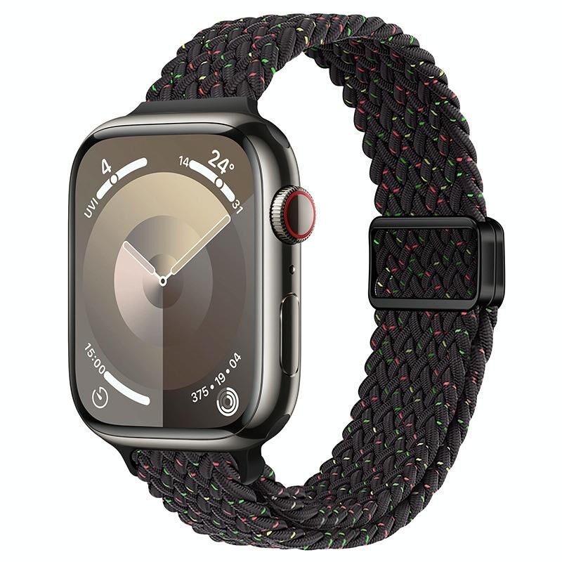 Για Apple Watch Series 8 41mm Λεπτό Μαγνητικό Κούμπωμα Νάιλον Πλεκτή Ζώνη Ρολογιού (Μαύρο Αστερόφωτο)