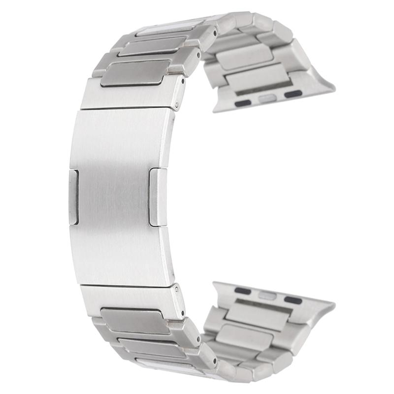 For Apple Watch Series 8 41mm Stainless Steel H-Shaped Fold Buckle Watch Band(Silver)