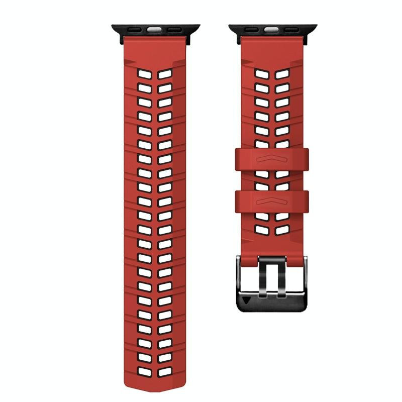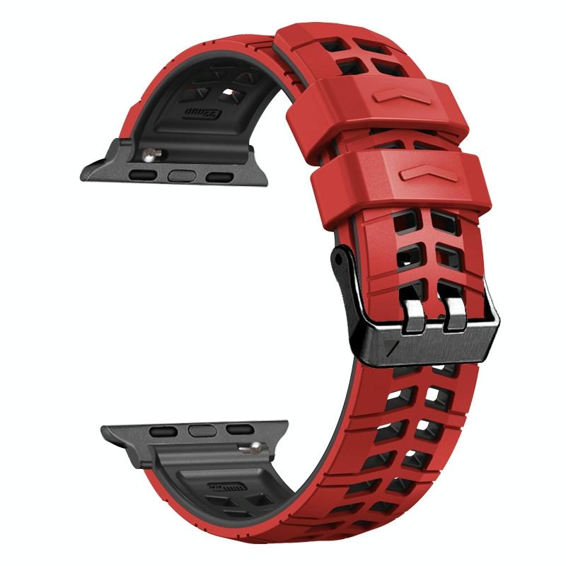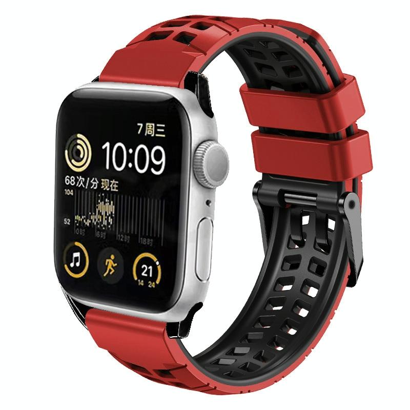 For Apple Watch Series 8 41mm Twill Dual-row Buckle Silicone Watch Band(Red Black)