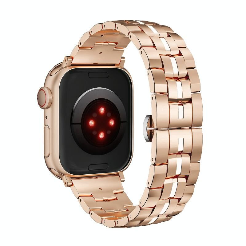 Για Apple Watch Series 8 45mm Μπρελόκ Πεταλούδας 5-Σφαιρών Μεταλλικό Λουρί Ρολογιού (Ροζέ χρυσό λευκό)