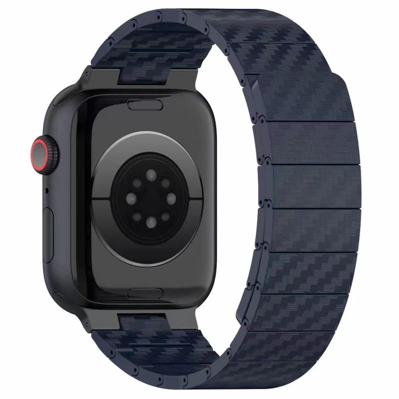 Για Apple Watch Series 8 45mm Μαγνητικό Λουρί Carbon Fiber (Μπλε της νύχτας)