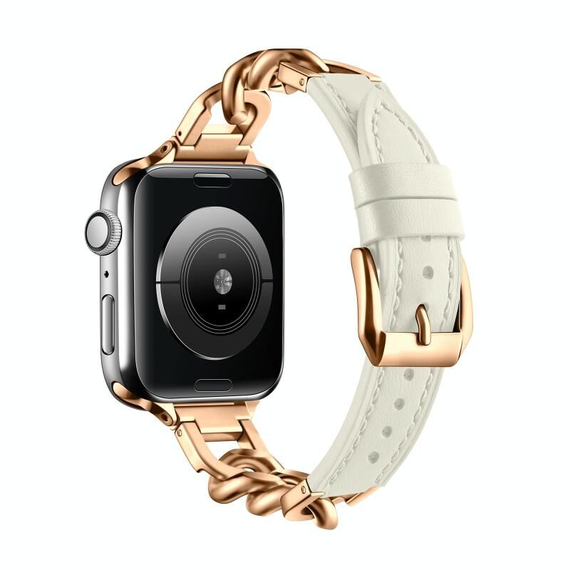 Για Apple Watch Series 8 45mm, αλυσίδα από γνήσιο δέρμα, μέγεθος: S (Ροζέ χρυσό μπεζ)