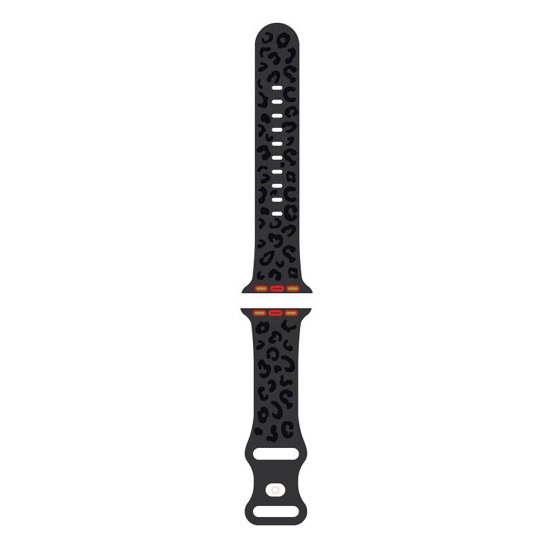 Για Apple Watch Series 8 45mm Κυρτό Λουρί Σιλικόνης με Εκτύπωση Λεοπάρδαλης (Μαύρο Μπλε)