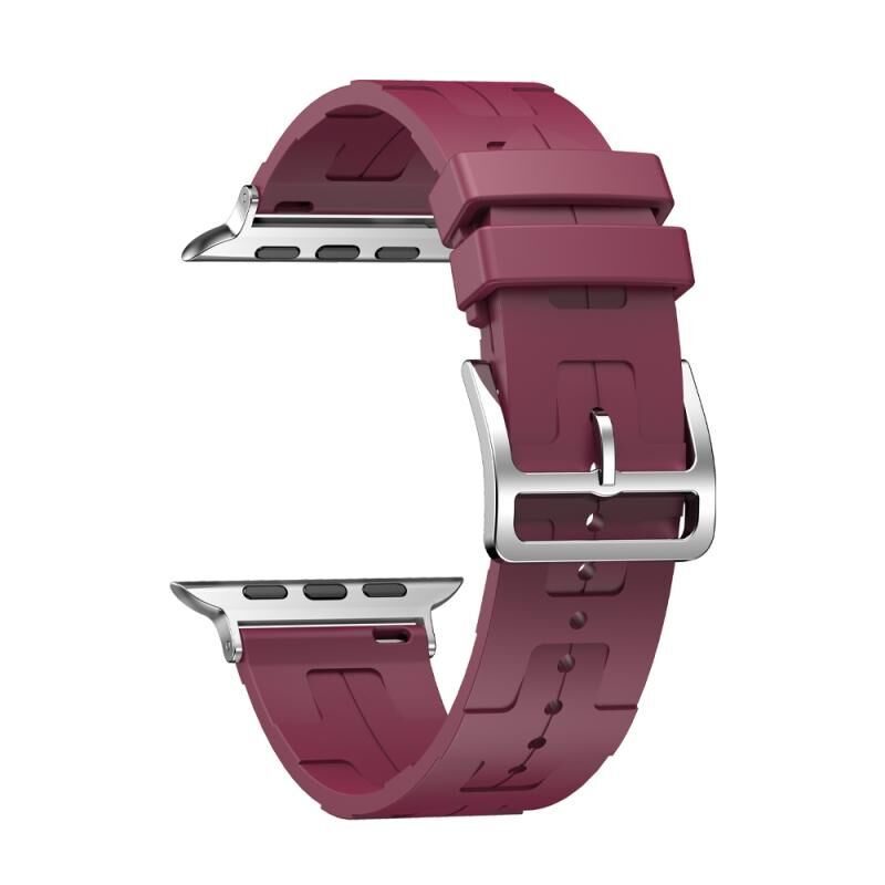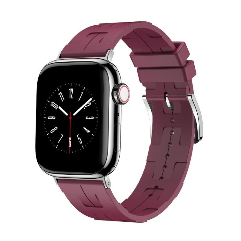 Για Apple Watch Series 8 45mm Λουρί ρολογιού με αγκράφα από μαλακή σιλικόνη υφής H (Κρασί)