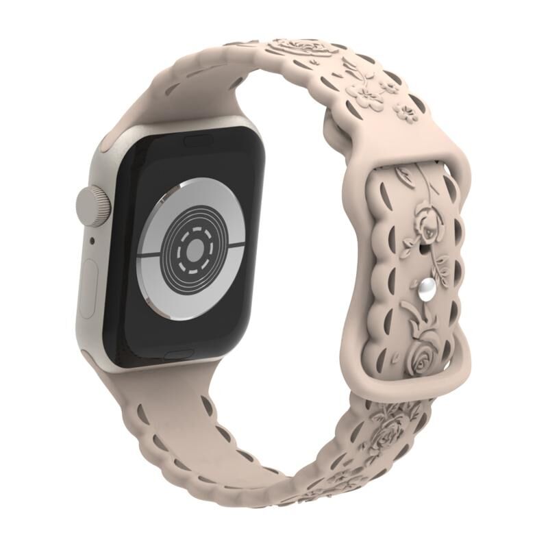 Για Apple Watch Series 8 45mm Δαντέλα 3D Ροζ Χαραγμένο Λουράκι Σιλικόνης (ρόδινο)