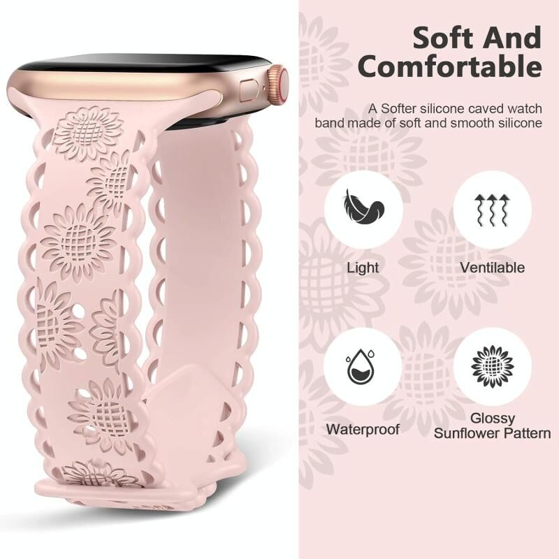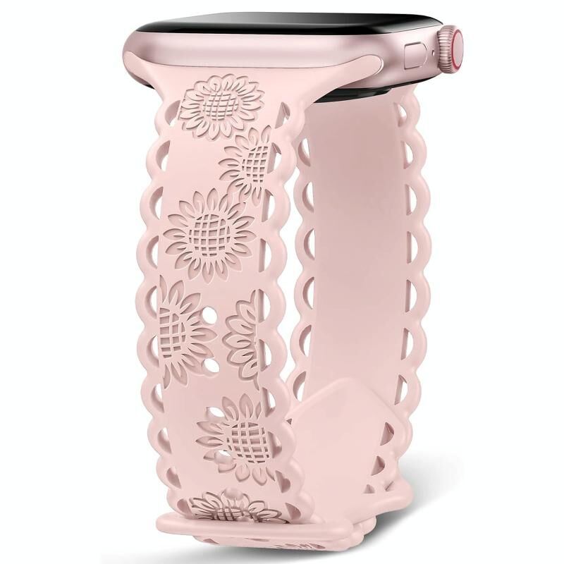 Για Apple Watch Series 8 45mm Λουρί Σιλικόνης με Δαντέλα και Χαραγμένο Ηλιάνθου (ρόζ)