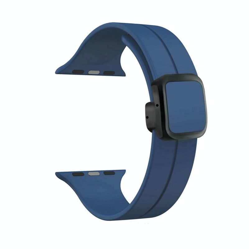 For Apple Watch Series 8 45mm Magnetic Square Buckle Silicone Watch Band(Midnight Blue)