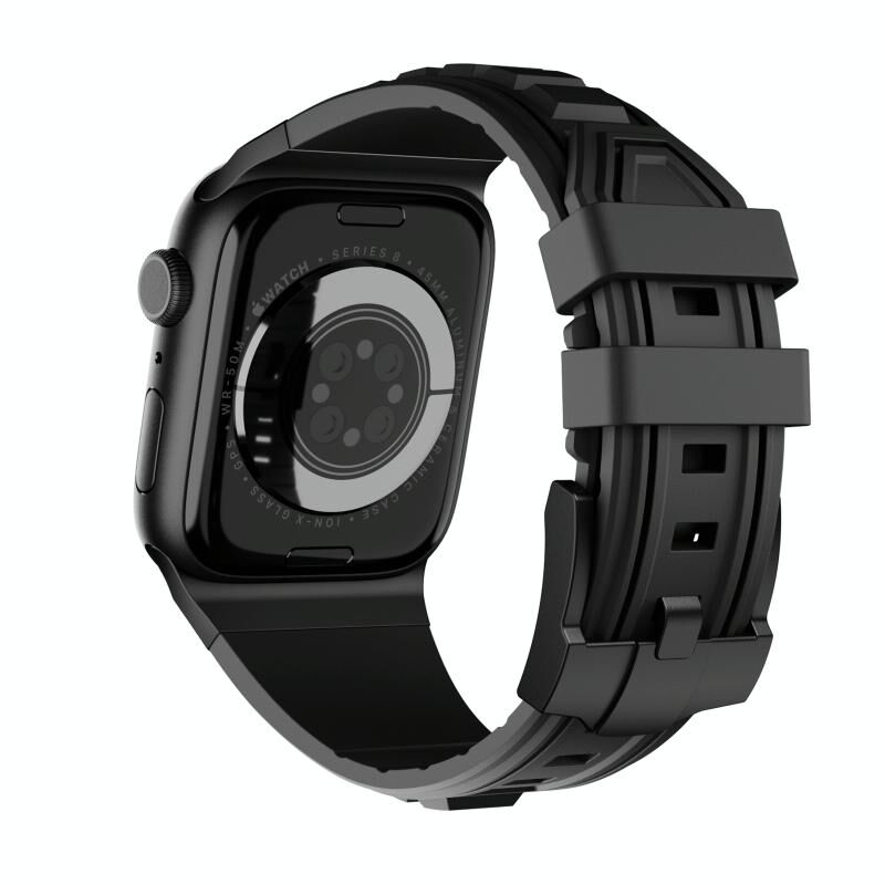 Για Apple Watch Series 8 45mm Μεταλλικός Συνδετήρας Λουράκι Σιλικόνης (Μαύρο + Αγκράφα Τιτανίου)