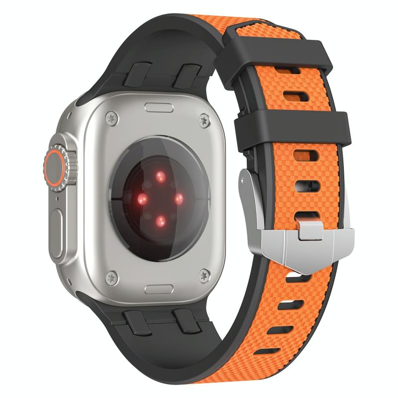 For Apple Watch Series 8 45mm Oak Silicone Watch Band(Black Orange)