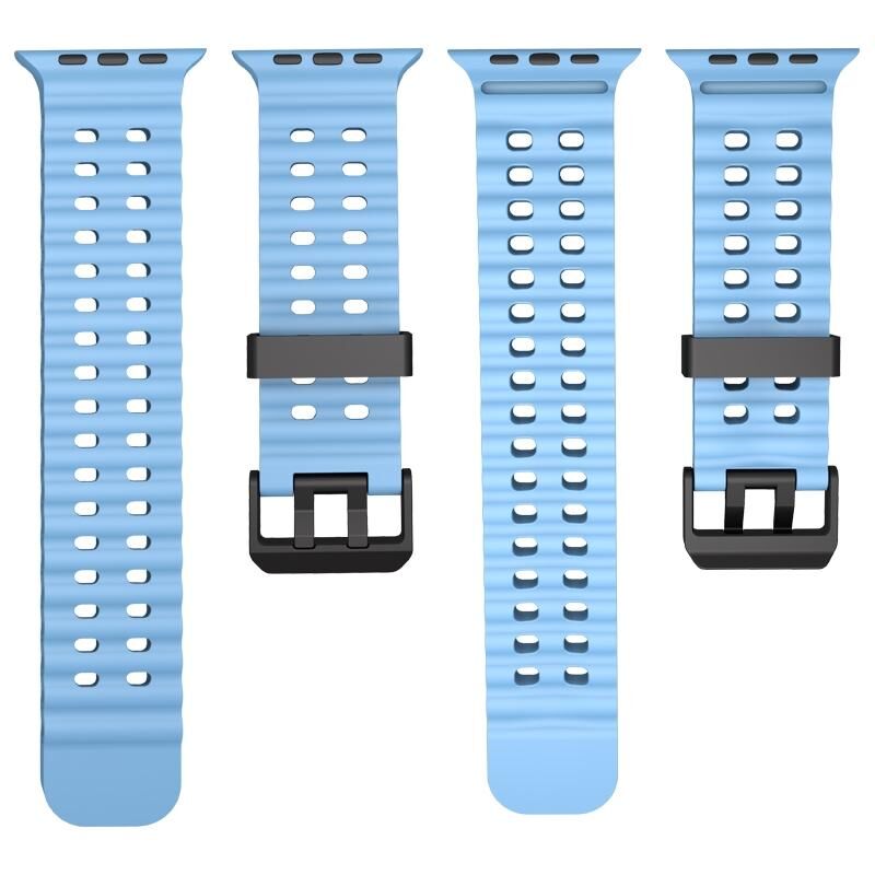 Για Apple Watch Series 8 45mm Λουρί Σιλικόνης Ocean με Διπλή Σειρά Τρυπών (Μαύρο)