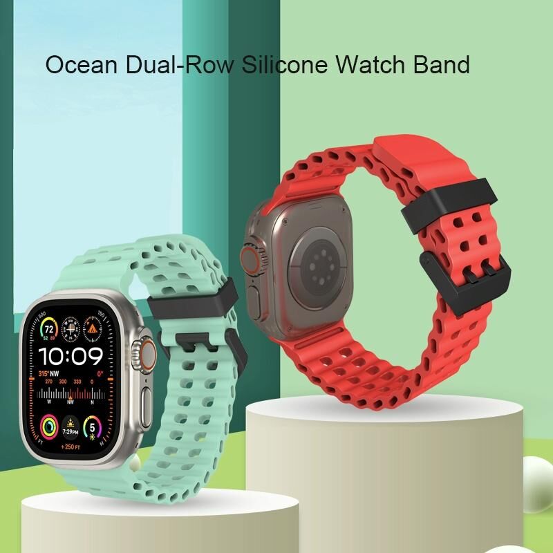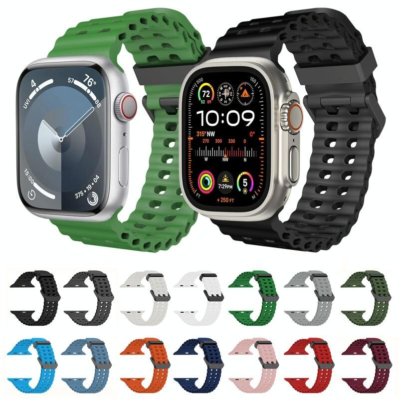 Για Apple Watch Series 8 45mm Λουρί Σιλικόνης Ocean με Διπλή Σειρά Τρυπών (Μπλε Πρέμιουμ)