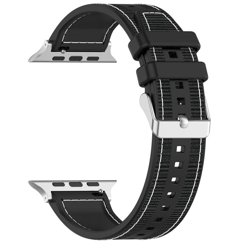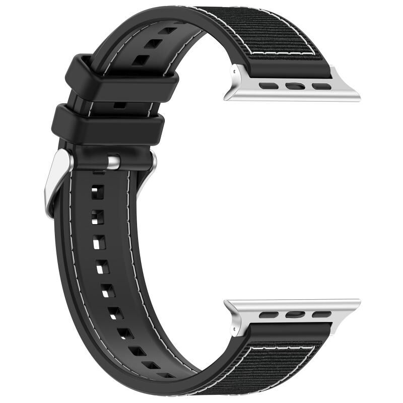 Για Apple Watch Series 8 45mm Απλή Αγκράφα Υβριδική Νάιλον Πλεξούδα Λουράκι Σιλικόνης (Μαύρο)