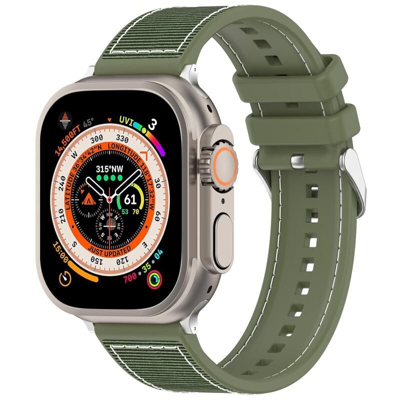 Για Apple Watch Series 8 45mm Απλή Αγκράφα Υβριδική Νάιλον Πλεξούδα Λουράκι Σιλικόνης (πράσινο)