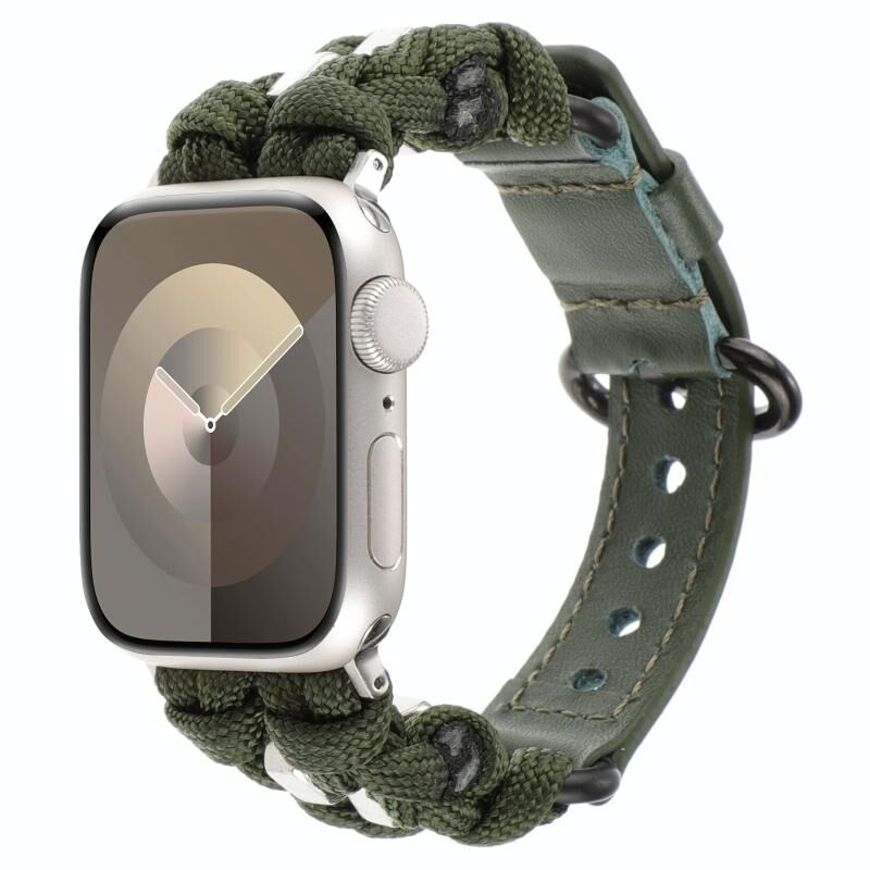 Για Apple Watch Series 8 45mm Λουρί Παρακορδίου με Γνήσιο Δέρμα (Χακί πράσινο)
