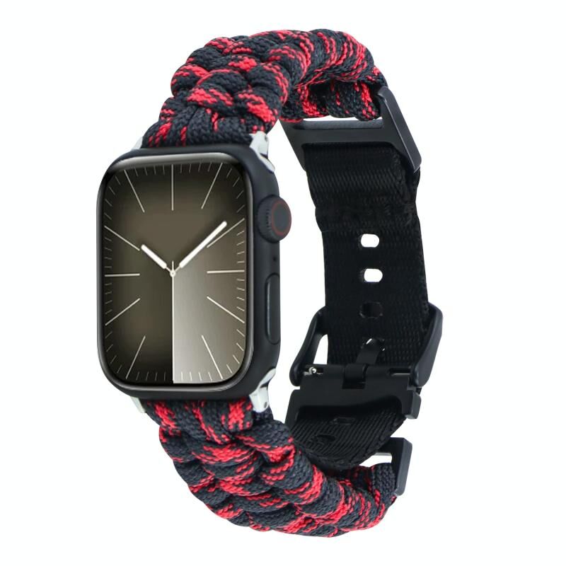 Για Apple Watch Series 8 45mm, Απλή πλεκτή λουρί ρολογιού από paracord με αγκράφα (Μαύρο Κόκκινο)