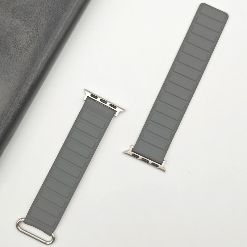 For Apple Watch Series 8 45mm Reverse Buckle Magnetic Silicone Watch Band(Silver Buckle Grey Brown)