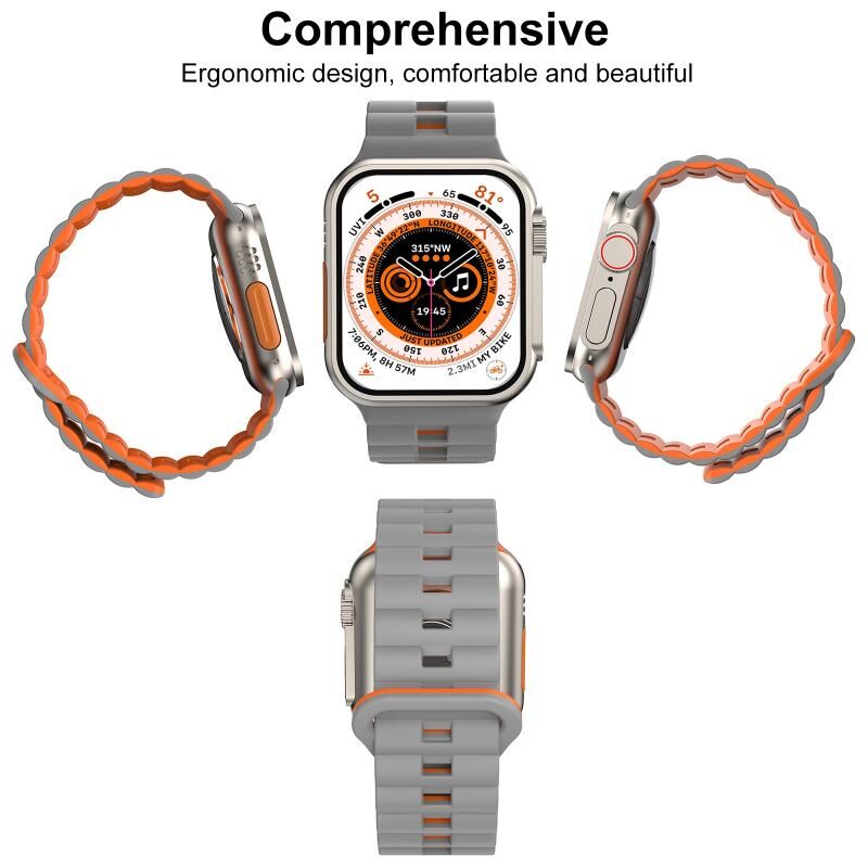 Για Apple Watch Series 8 45mm Λουρί Σιλικόνης με Μαγνητικό Κούμπωμα Αντίστροφης Πόρπης Δύο Χρωμάτων (Γκρι+Πορτοκαλί)