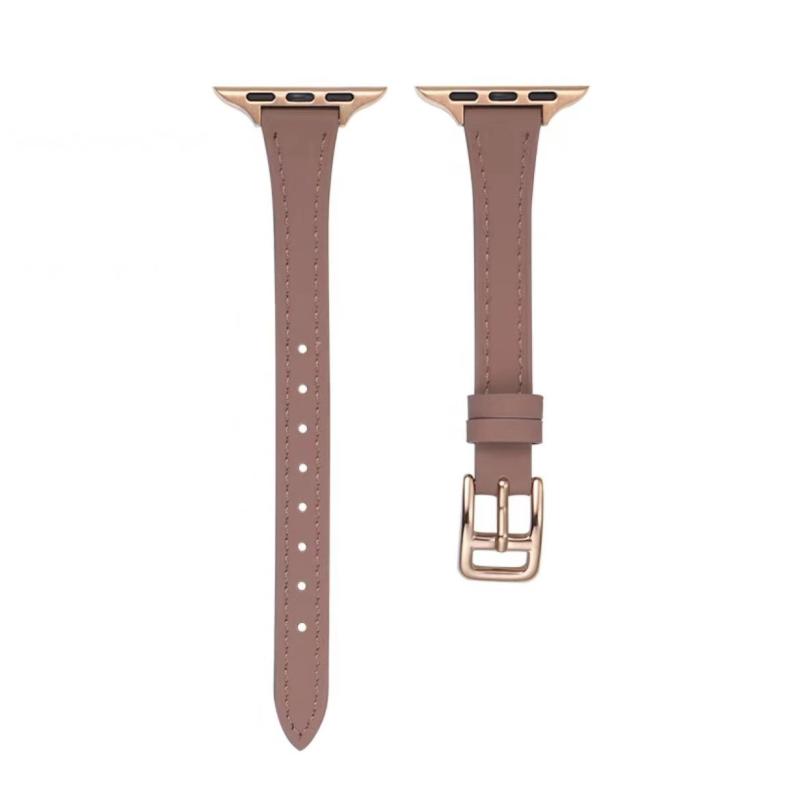 For Apple Watch Series 8 45mm T-shaped Slim Genuine Leather Watch Band(Light Brown)