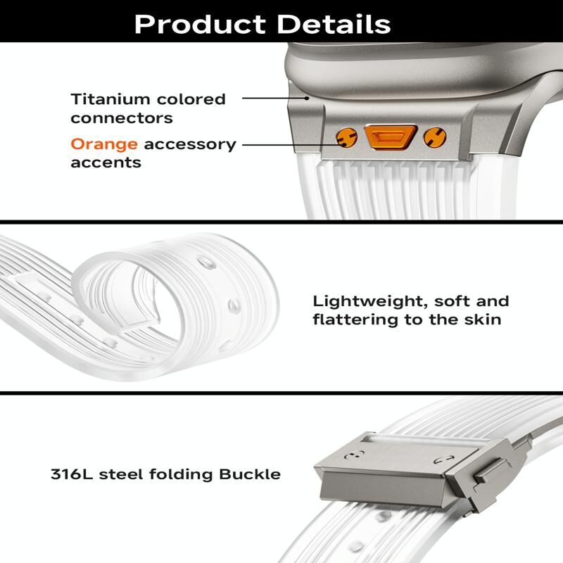 Για Apple Watch Series 8 45mm Διαφανές Σιλικόνης Λουράκι (Διαφανές Μαύρο)