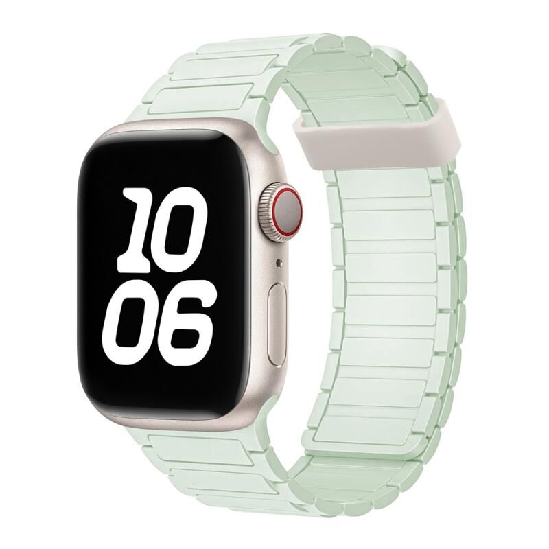 Για Apple Watch Series 8 45mm Μαγνητικό Λουρί Σιλικόνης με Τριπλή Κορδέλα (Ανοιχτό Μέντα)