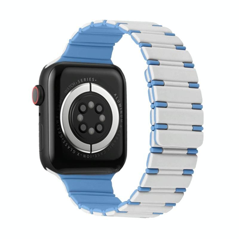 Για Apple Watch Series 8 45mm Διχρωματικό Μαγνητικό Λουράκι Σιλικόνης (Γαλάζια Ομίχλη Πορτοκαλί)