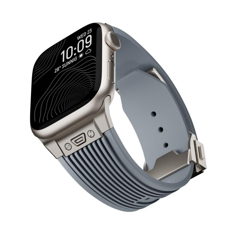 Για Apple Watch Series 8 45mm Ελαστικός ιμάντας ρολογιού από τιτάνιο με κάθετη υφή και αγκράφα (Γκρι)