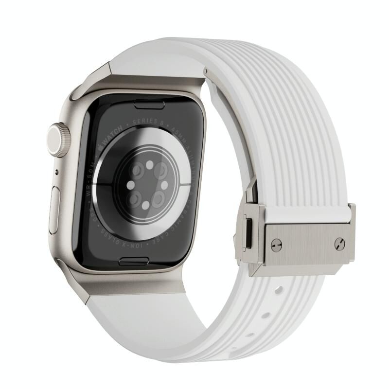 Για Apple Watch Series 8 45mm Ελαστικός ιμάντας ρολογιού από τιτάνιο με κάθετη υφή και αγκράφα (Λευκό)