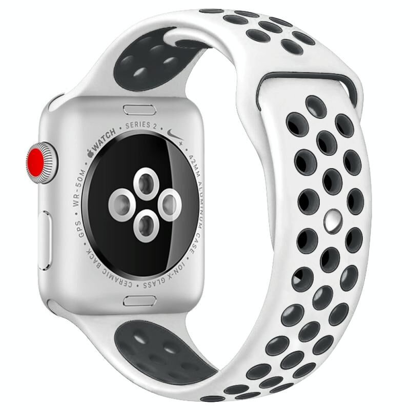 Για Apple Watch Series 8&7 41mm / SE 2&6&SE&5&4 40mm / 3&2&1 38mm Αθλητικό Λουράκι Σιλικόνης Τυπικής Έκδοσης (Λευκό Μαύρο)