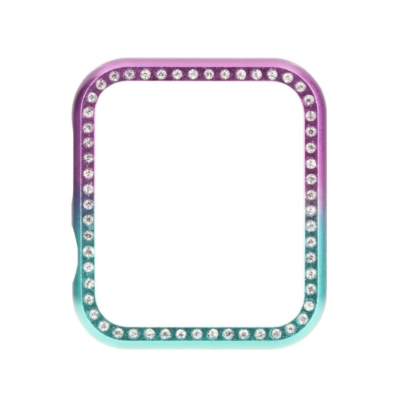 For Apple Watch Series 8&7 45mm Aluminum Alloy Diamond Watch Protective Case(Green Purple)