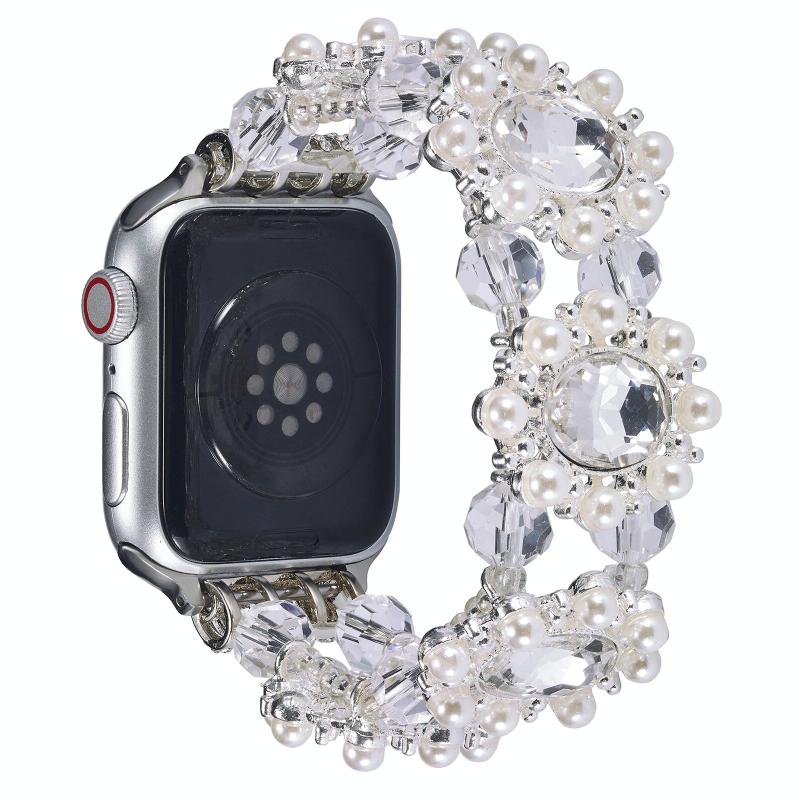 For Apple Watch Series 9 41mm Beaded Pearl Gemstone Bracelet Watch Band(White)