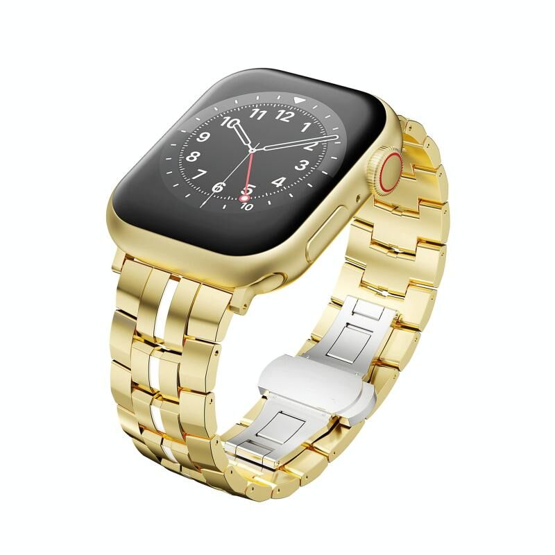 For Apple Watch Series 9 41mm Butterfly Buckle 5-Beads Metal Watch Band(Gold White)