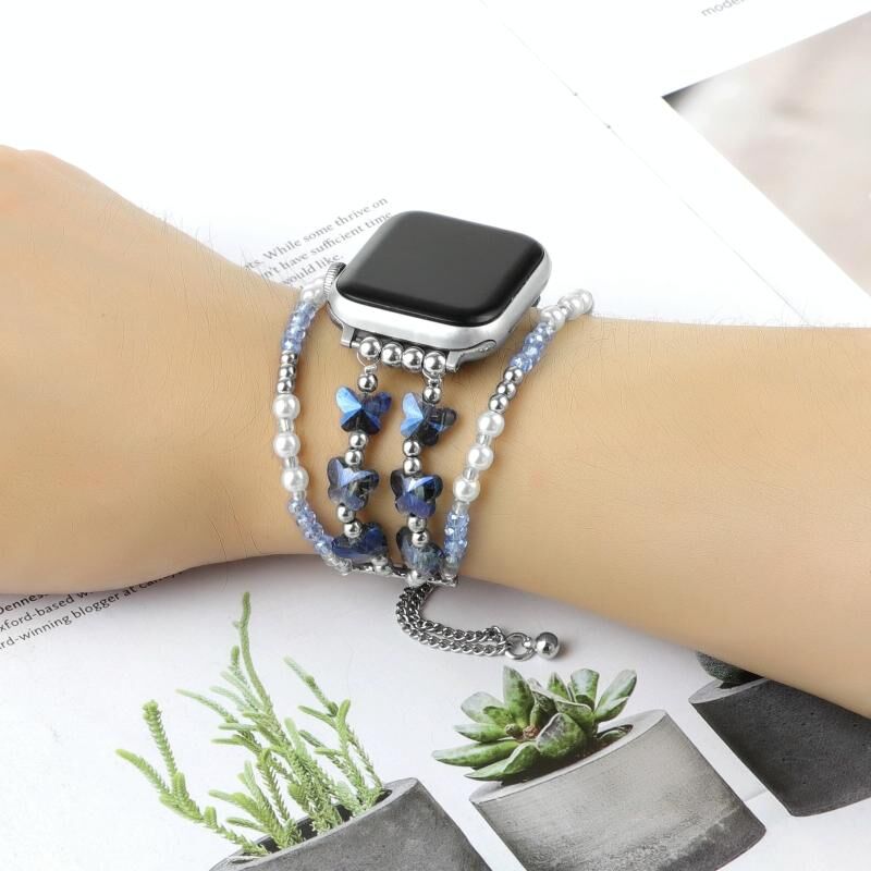 Για Apple Watch Series 9 41mm Βραχιόλι αλυσίδας πεταλούδας Μεταλλικό λουρί ρολογιού (Μπλε)