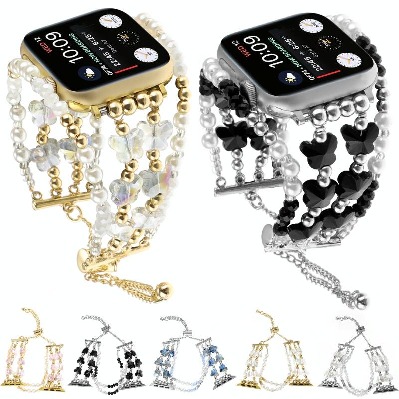Για Apple Watch Series 9 41mm Βραχιόλι αλυσίδας πεταλούδας Μεταλλικό λουρί ρολογιού (Διαφανές Ασημί)