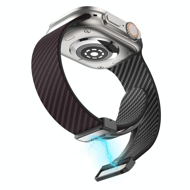 Για Apple Watch Series 9 41mm Λουρί ρολογιού από ανθρακονήματα με μαγνητική αγκράφα μαύρου χρώματος (Βασιλικό Μπλε Λευκό)
