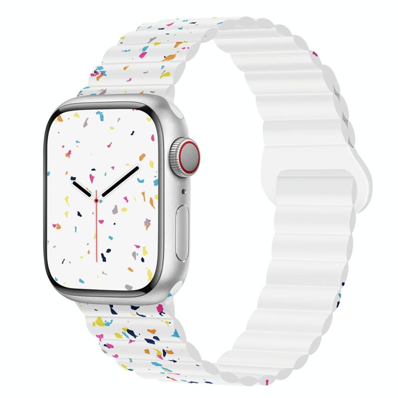 Για Apple Watch Series 9 41mm Έγχρωμα Σημεία Μαγνητικό Λουράκι Σιλικόνης (Λευκό)