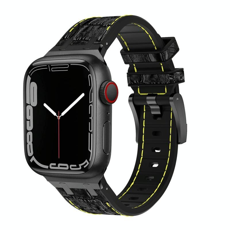 Για Apple Watch Series 9 41mm Λουρί Σιλικόνης Υγρού με Υφή Κροκόδειλου (Μαύρο Λευκό Μαύρο)