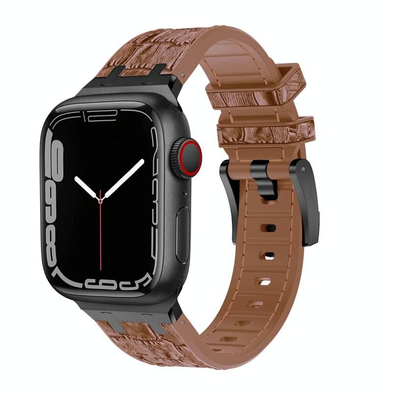 Για Apple Watch Series 9 41mm Λουρί Σιλικόνης Υγρού με Υφή Κροκόδειλου (Μαύρο Λευκό Μαύρο)