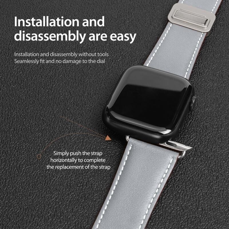 Για Apple Watch Series 9 41mm DUX DUCIS YA Series Μαγνητικό Κούμπωμα Αυθεντικό Δερμάτινο Λουρί Ρολογιού (Μαύρο) (Γκρι)