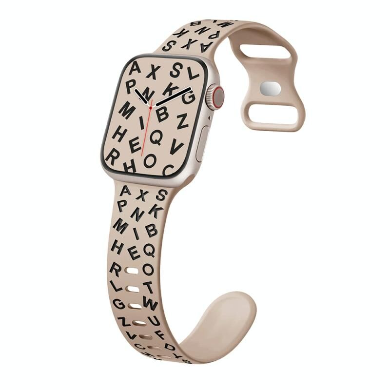 Για Apple Watch Series 9 41mm Λουράκι Σιλικόνης με Αγκράφα Πεταλούδας σε Αγγλικά Γράμματα (Λευκό Μαύρο)