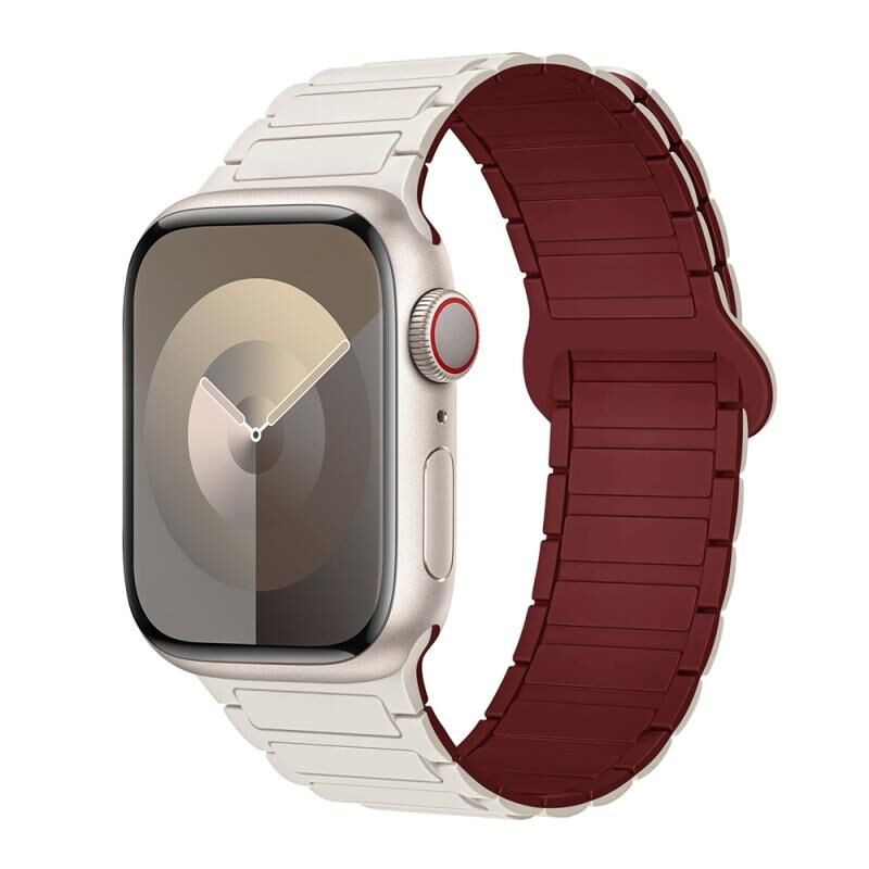 Για Apple Watch Series 9 41mm Μαγνητικό Λουράκι Σιλικόνης σε Σχήμα I (Λευκό Αστρόφωτο)